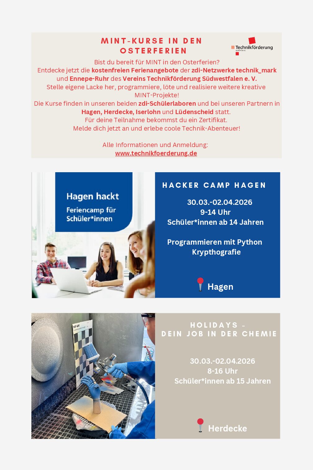 Bist du bereit für MINT in den Osterferien? Entdecke jetzt die kostenfreien Ferienangebote der zdi-Netzwerke technik_mark und Ennepe-Ruhr des Vereins […]